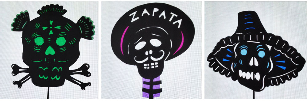 Greenskull, Zapata, Blue La Catrina Shadow Puppets El Dia de Los Muertos, the most exciting party in the world! Take a puppet and welcome the dead back with a dance to the Mariachi band…